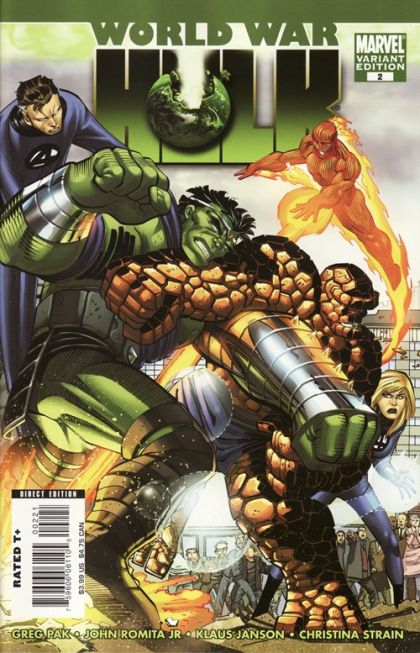 Upon learning of the Hulk's return, Iron Man made himself the first line of defense against him. Hoping to use the same S.P.I.N. technology he used to neutralize She-Hulk, Tony Stark engaged the Hulk alone to minimize casualties. But for some reason, S.P.I.N. had no effect on the Hulk, and Iron Man fell to his assault. Now the remaining heroes in New York are scrambling to put together their own defenses. The Mighty Avengers, aided by several of the New Avengers and She-Hulk attempt to confront the Hulk and talk him out of this destructive path. But not even his cousin, She-Hulk can dissuade the Hulk after his losses. The Hulk and his Warbound soundly defeat the Avengers, and move on to face the Fantastic Four. But the Hulk's attack on New York has hardly gone unnoticed by the government. The US military has mobilized a non-super-powered response to the Hulk's attack, lead by his old nemesis, General Thaddeus 'Thunderbolt' Ross!