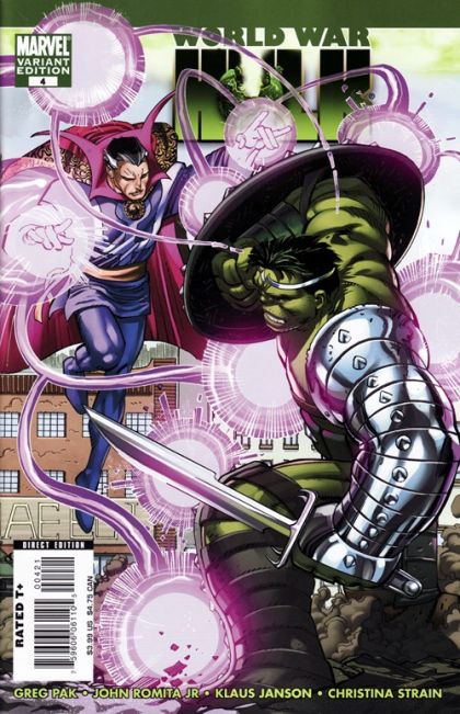 Desperate to see the Hulk defeated, Doctor Strange channels the essence of a powerful demon named Zom in an attempt to overpower the Green King. But the fundamental difference between the natures of Zom and Doctor Strange lead to his downfall, another captive of the Hulk. Having caught all the men he believes responsible for the death of Sakaar, and his wife, the Hulk returns to the new arena he has created of Madison Square Garden. There, the blood of the guilty will be spilled... but not by the Hulk. Fitted with Obediance Disks from Sakaar, they will fight just as the Hulk was made to. But there's still one player that might have a chance at stopping the Hulk's rampage, if he can only overcome his own fears and leave his home.