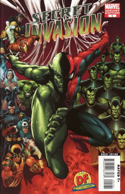 The Skrull agenda that has been hinted at for months is put into top gear. A lone Skrull craft lands in the Savage Land, and both teams of Avengers head in to investigate, despite their lack of trust for each other. The find the installation they were captured in back from New Avengers #5, in much worse repair than it used to be. They also find the Skrull craft, but before they can tear it open, a wave of attacks from Skrull agents strike down most human resistance, often accompanied by the mantra "He Loves You." Iron Man is felled by a virus, the orbiting S.W.O.R.D. installation is destroyed, the Baxter Building is sucked into the Negative Zone, Reed Richards is seriously wounded, and a spacecraft full of what appear to be heroes in old school costumes cracks open.