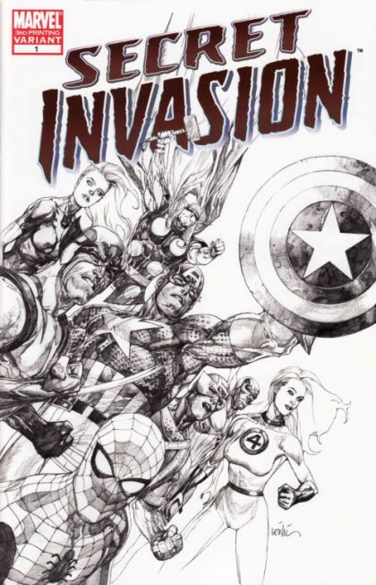 The Skrull agenda that has been hinted at for months is put into top gear. A lone Skrull craft lands in the Savage Land, and both teams of Avengers head in to investigate, despite their lack of trust for each other. The find the installation they were captured in back from New Avengers #5, in much worse repair than it used to be. They also find the Skrull craft, but before they can tear it open, a wave of attacks from Skrull agents strike down most human resistance, often accompanied by the mantra "He Loves You." Iron Man is felled by a virus, the orbiting S.W.O.R.D. installation is destroyed, the Baxter Building is sucked into the Negative Zone, Reed Richards is seriously wounded, and a spacecraft full of what appear to be heroes in old school costumes cracks open.