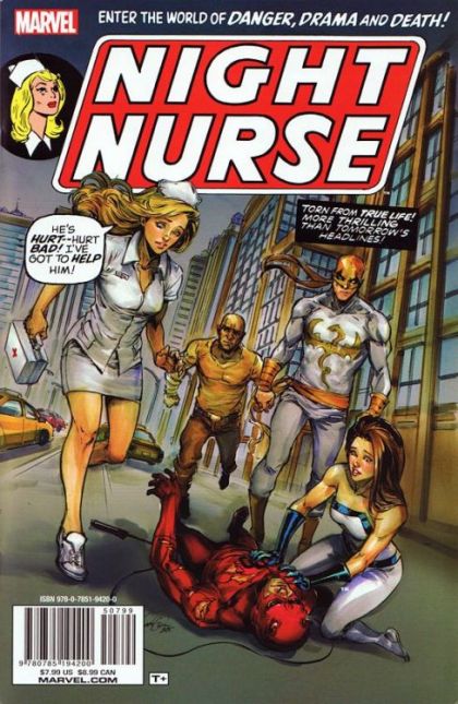- Marvel's 1970s cult-classic miniseries is collected in one super-sized one-shot! - Linda Carter, Georgia Jenkins and Christine Palmer are all studying to become nurses. But what will happen when Linda must choose between love and career? - Can Georgia stop her brother from holding the hospital hostage? - As the nurses care for a mysterious hit-and-run victim, Christine realizes that her new boyfriend hides a terrible secret! - When a mob war spills over into the hospital, Linda must act fast to save lives! - Will Christine survive learning the secret of Sea-Cliff Manor? - And when Daredevil is fatally shot, the Night Nurse must step out of the shadows and return to action! - Guest-starring Black Widow, Elektra, Iron Fist, Luke Cage and Jessica Jones! - Collecting NIGHT NURSE (1972) #1-4 and DAREDEVIL (1998) #80.