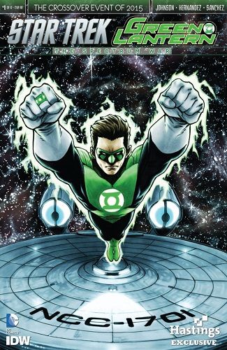 Two iconic franchises collide for the blockbuster crossover event of 2015! The crew of the U.S.S. Enterprise meets the Green Lantern Corps for the first time in an all-new adventure that spans the cosmos! Don't miss the thrilling first chapter of THE SPECTRUM WAR, as Kirk and Spock make a most unusual discovery on a lost world... igniting events that will change the fate of empires!