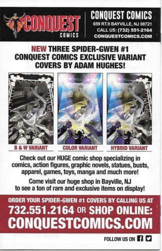 SPIDER-GWEN SPINS INTO HER OWN SERIES! - BECAUSE YOU DEMANDED IT! The breakout hit of the biggest Spider-Event of the century is taking comic shops by storm this winter with her own new ongoing series - SPIDER-GWEN! - Gwen Stacy is Spider-Woman, but you knew that already. What you DON'T know is what friends and foes are waiting for her in the aftermath of Spider-Verse! - From the fan-favorite creative team that brought you Spider-Gwen's origin story in EDGE OF SPIDER-VERSE, Jason Latour and Robbie Rodriguez! Rated T+