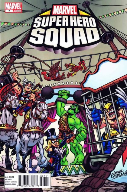Written by TODD DEZAGO Penciled by MARCELO DICHIARA Cover by LEONEL CASTELLANI 'SUPER HERO CIRCUS!' The hypnotic Ringmaster takes the center ring as he mesmerizes the Squaddies to think they are circus performers--keeping them busy while Doom's Lethal Legion attempts to retrieve some Fractals from the SHIELD Helicarrier! Also, the gang enjoys a day at the beach in 'SUPER SQUADDIE SUMMER FUN!' and Abomination and MODOK pay a visit to the Offices of Marble Comics in 'BRING ON THE BAD GUYS!' which is pretty funny. 32 PGS./All Ages ?$2.99