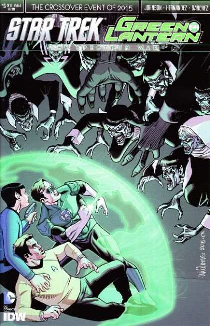 The galactic civil war reaches a critical point as the Yellow Lantern Klingons, Orange Lantern Romulans, and Red Lantern Gorn fight for supremacy, with Hal Jordan, James T. Kirk, and the crew of the Enterprise caught in the middle! It's a dark night for the Federation... and the arrival of Nekron and his Black Lanterns will only make things worse! Don't miss the penultimate chapter in the blockbuster crossover event of 2015!