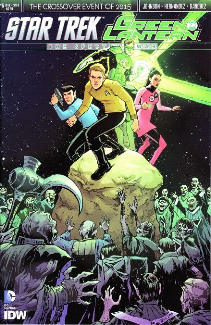 The galactic civil war reaches a critical point as the Yellow Lantern Klingons, Orange Lantern Romulans, and Red Lantern Gorn fight for supremacy, with Hal Jordan, James T. Kirk, and the crew of the Enterprise caught in the middle! It's a dark night for the Federation... and the arrival of Nekron and his Black Lanterns will only make things worse! Don't miss the penultimate chapter in the blockbuster crossover event of 2015!