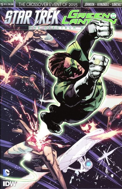 The galactic civil war reaches a critical point as the Yellow Lantern Klingons, Orange Lantern Romulans, and Red Lantern Gorn fight for supremacy, with Hal Jordan, James T. Kirk, and the crew of the Enterprise caught in the middle! It's a dark night for the Federation... and the arrival of Nekron and his Black Lanterns will only make things worse! Don't miss the penultimate chapter in the blockbuster crossover event of 2015!