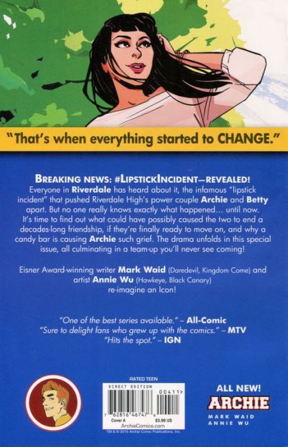The biggest comic series of the year continues! What was the 'lipstick incident' that pushed Archie and Betty apart? And can the smartest boy in Riverdale fix it? The spotlight is on Dilton and Moose as, together, they show what friendship is really all about! We're pleased to welcome Annie Wu (Black Canary, Hawkeye) to Riverdale, as she takes over art duties in this brand-new issue!