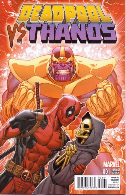 •We all know Thanos - the man who single-handedly made bejeweled gloves into THE deadly weapon of choice for mass murder. But did you know he shares an ex with Deadpool? No, not Vanessa - I refer to the cosmic 'lady' known as DEATH. •And when everyone in the universe stops dying, both of her former beaus take an interest. •Can the pair overcome one's overwhelming hatred of and annoyance by the other? Or will Thanos finally let Deadpool die once and for all?