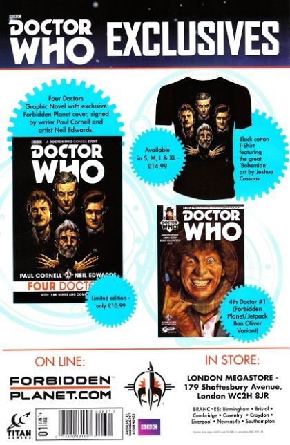 Jump on board the TARDIS with FOUR all-new short tales of the Ninth, Tenth, Eleventh and Twelfth Doctors! Whether you're a whizz with a Sonic Screwdriver or completely new to Who, this is the perfect Free Comic Book Day adventure for SF fans of all ages! Written and illustrated by the creative teams of the regular comics, this is the ideal place to start reading!
