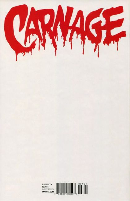 Get ready to scream! Carnage, the homicidal symbiote is back, and he's leaving a trail of bodies behind him. The FBI is hot on his trail, with a different playbook since their serial killer is a super villain. They're equipped with the latest sonic tech and a team including military hero/astronaut John Jameson and a reformed Eddie Brock/Toxin! But when Carnage escapes into an abandoned coal mine, the FBI's plan is starting to look like a trap... for THEM! Rated T+