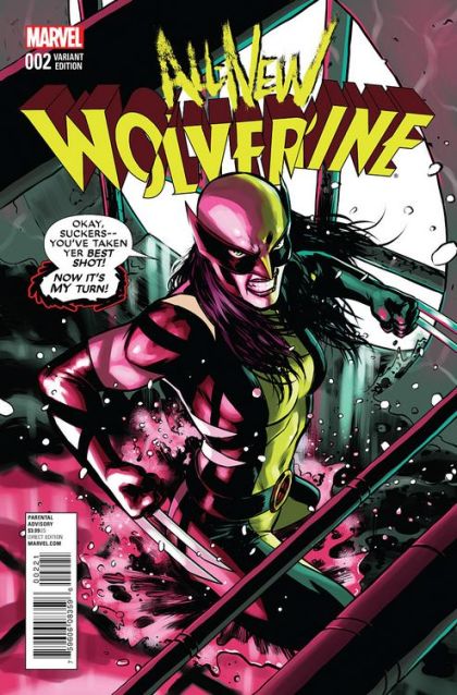LAURA KINNEY EMBRACES HER DESTINY. HERE! COMES! WOLVERINE! X-23 was created to be a weapon and for a time, that's all she was. But with the help of her mentor, LOGAN-the original WOLVERINE-she escaped that dark past. Tragically, Logan has fallen, but Laura will continue in his footsteps as a hero. Recent events have her doing everything in her power to keep those around her alive, as violent forces are hell-bent on mutual destruction. If anyone can stop them, it's Laura. She is the best there is at what she does. She is THE ALL-NEW WOLVERINE. Parental Advisory