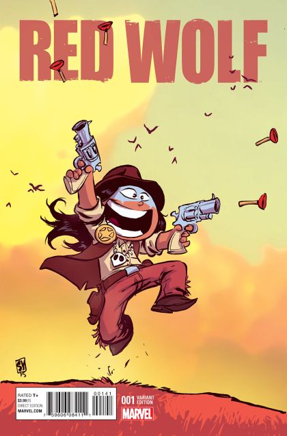 ONCE UPON A TIMELY IN THE WEST… Frontier boomtown Timely has more than its share of scoundrels: it takes a hero to keep them in line. Red Wolf—the Cheyenne who crossed the desert and stood up to Mayor Wilson Fisk in Secret Wars’ 1872—is the only man who can fill fallen Sheriff Steve Rogers’ boots. As an outsider and an honest man, Red is going to need all his wits, and both his fists, to serve and protect. The tale of how Red Wolf wins the West starts in 1872, and will take him farther than he could ever imagine!