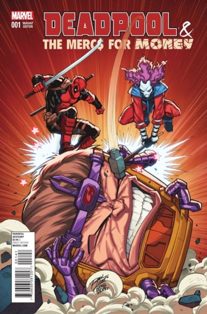 Deadpool might be an Avenger now, but he's also got his own private team of mercenaries...the legally-cleared-to-be-called MERCS FOR MONEY! Got a problem you can't solve on your own and a pile of money you'd like to be rid of? Just call Deadpool, Stingray, Massacre, Solo, Foolkiller, Terror and Slapstick and watch as that problem is shot, stabbed, eviscerated, pulverized and generally made bloody! Parental Advisory