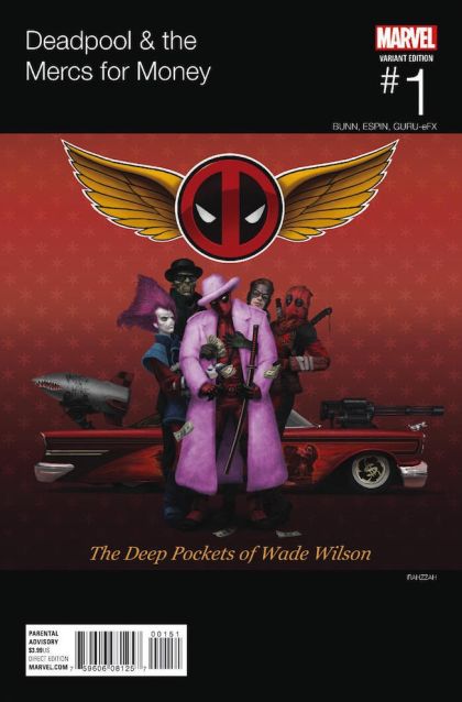 Deadpool might be an Avenger now, but he's also got his own private team of mercenaries...the legally-cleared-to-be-called MERCS FOR MONEY! Got a problem you can't solve on your own and a pile of money you'd like to be rid of? Just call Deadpool, Stingray, Massacre, Solo, Foolkiller, Terror and Slapstick and watch as that problem is shot, stabbed, eviscerated, pulverized and generally made bloody! Parental Advisory