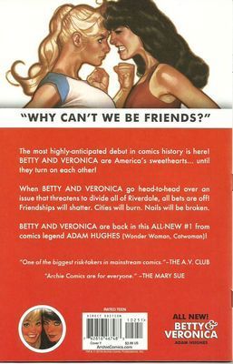 It's Betty vs. Veronica! The most highly-anticipated debut in comics history is here! Betty and Veronica are America's sweethearts - until they turn on each other! Pops' Chocklit Shoppe is being taken over by a huge coffee company. When Betty and Veronica go head-to-head over the issue, all bets are off! Friendships will shatter. Cities will burn. Nails will be broken. Betty and Veronica are back in this all-new #1 from comics legend Adam Hughes (Wonder Woman, Catwoman, Before Watchmen: Dr. Manhattan)!