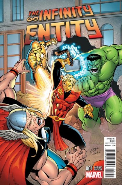 FROM THE PAGES OF THE THANOS: THE INFINITY RELATIVITY OGN! When last we saw Adam Warlock, he was a captive of Annihilus of the Negative Zone. So where does THE INFINITY ENTITY #1 find him? Hanging with the original Avengers? Then things start getting weird. But what else would you expect from the cosmic team of Jim Starlin and Alan Davis? Guest starring the Guardians of the Galaxy. Rated T+