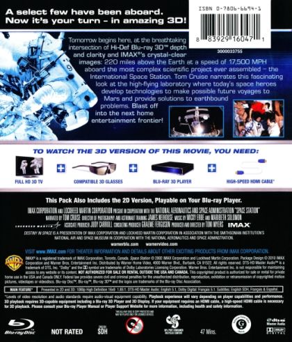 Some 220 miles above Earth lies the International Space Station, a one-of-a-kind outer space laboratory that 16 nations came together to build. Get a behind-the-scenes look at the making of this extraordinary structure in this spectacular IMAX film. Viewers will blast off from Florida's Kennedy Space Center and the Baikonur Cosmodrome in Russia for this incredible journey -- IMAX's first-ever space film. Tom Cruise narrates.