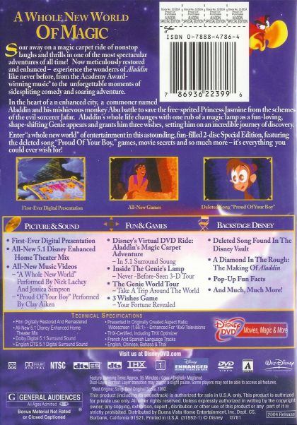 In the boorish city of Agrabah, kind-hearted street urchin Aladdin and Princess Jasmine fall in love, although she can only marry a prince. He and power-hungry Grand Vizier Jafar vie for a magic lamp that can fulfill their wishes.