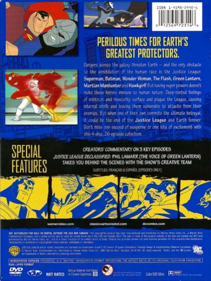 An American animated television series about a team of superheroes which ran from 2001 to 2004 on Cartoon Network. Produced by Warner Bros. Animation, it is based on the Justice League and associated comic book characters published by DC Comics. After its second season, it became Justice League Unlimited, and ran an additional three seasons.