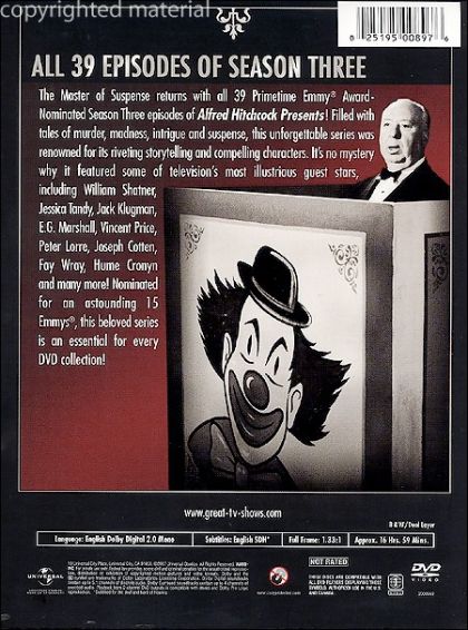 Each 30 minute episode included opening and closing vignettes featuring Hitchcock who would often explain some aspect of the day's show and would often offer subtle (or not so subtle) jabs at the shows sponsors.