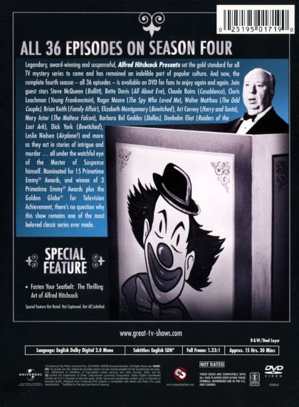 Each 30 minute episode included opening and closing vignettes featuring Hitchcock who would often explain some aspect of the day's show and would often offer subtle (or not so subtle) jabs at the shows sponsors.