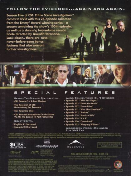 CSI is an innovative, new type of crime drama in which the characters use cutting-edge forensic tools to examine the evidence to solve the case. Rather than a 'whodunnit' cop show (investigating witnesses/suspects), CSI explores the 'howdunnit'. CSI has been the number one scripted series in the Nielsen ratings for three years running. CSI is now in its tenth amazing season.
