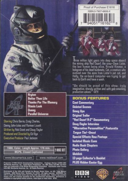 Three million years after the demise of humanity, third technician Dave Lister awakes aboard the mining ship Red Dwarf. Sentenced to a period of suspended animation for smuggling his pet cat on board, he is joined by just four fellow survivors: second technician Arnold J Rimmer, a sneering-yet-inept hologram based on his one-time superior; Holly, a ship's computer reduced to near-senility by eons adrift in space; a humanoid descendant of the cat obsessed with fashion and fish; and Kryten, a salvaged android programmed to serve his useless companions. Together, this bickering band must come to terms with an existence which, in terms of productivity and purpose, isn't that far removed from its old one.