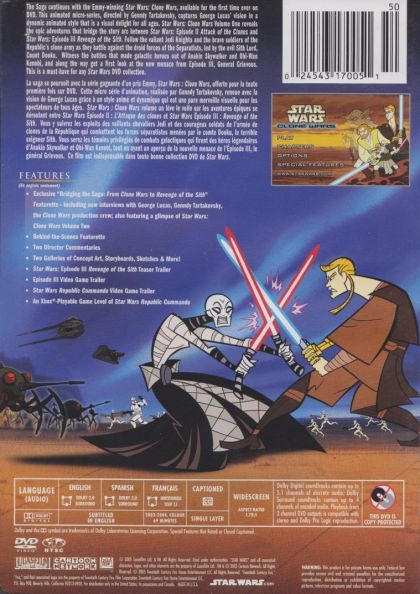Star Wars Clone Wars Volume 1 contains the first 20 three-minute episodes of the series that was shown on Cartoon Network. Clone Wars takes place between episodes 2 and 3 of the Star Wars movies and tells the story of the conflict between the republic and the independent systems that took place between those two films. In the episodes Count Dooku holds a competition to find the best bounty hunter by holding a tournament pitting the bounty hunters against each other. The bounty hunter that wins is then sent to kill Anakin Skywalker. Along with the main storyline other fights are shown, including Mace Windu, Obi-Wan Kenobi and Kit Fisto all battling different enemies.