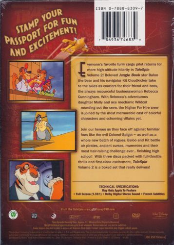 Everyone's favorite furry cargo pilot returns for more high-altitude hilarity in TALESPIN VOLUME 2! Beloved JUNGLE BOOK star Baloo the bear and his navigator Kit Clouldkicker take to the skies as couriers for their friend and boss, the always resourceful businesswoman Rebecca Cunningham. With Rebecca's adventurous daughter, Molly, and ace mechanic Wildcat rounding out the crew, the Higher for Hire crew is joined by the most memorable cast of colorful characters and scheming villains yet. Join our heroes as they face off against familiar foes like the evil Colonel Spigot -- as well as a whole new batch of rogues. Baloo and Kit battle air pirates, ancient curses, mummies and their most hair-raising challenge ever...finishing high school! With three discs packed with full-throttle thrills and first class excitement, TALESPIN VOLUME 2 is a boxed set that really delivers!