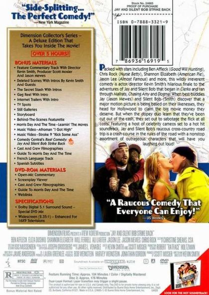When Jay and Silent Bob learn that their comic-book alter egos, Bluntman and Chronic, have been sold to Hollywood as part of a big-screen movie that leaves them out of any royalties, the pair travels to Tinseltown to sabotage the production.