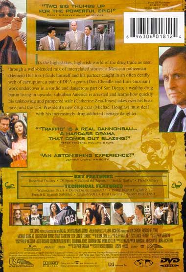 An exploration of the United States of America's war on drugs from multiple perspectives. For the new head of the Office of National Drug Control Policy, the war becomes personal when he discovers his well-educated daughter is abusing cocaine within their comfortable suburban home. In Mexico, a flawed, but noble policeman agrees to testify against a powerful general in league with a cartel, and in San Diego, a drug kingpin's sheltered trophy wife must learn her husband's ruthless business after he is arrested, endangering her luxurious lifestyle.