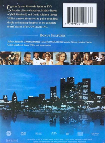 When former fashion model Maddie Hayes goes broke and finds that one of her few remaining assets is ownership of the Blue Moon Detective Agency, she is tempted to liquidate it until she meets the quirky employees and gets involved in their even quirkier cases. Moonlighting as a series was plagued by production delays and erratic scheduling. Scheduled episodes were often delayed for weeks and reruns substituted at the last minute. Many in-jokes and short fill-in pieces refer to this and other topical items at the beginning and end of some programs. Episodes 35 - 39 were particularly affected by this, and in their original broadcast contained intros dealing with the slow production pace.