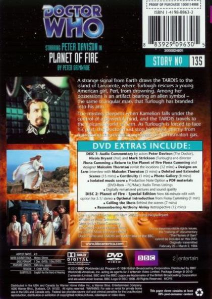 It transpires that amongst the Sarn natives, who worship a fire god named Logar, are political prisoners from Trion - Turlough's home world. Turlough too is revealed to be a political refugee. He meets his brother and later, when a spaceship arrives from his home world, discovers that Trion has granted an amnesty to all political prisoners.