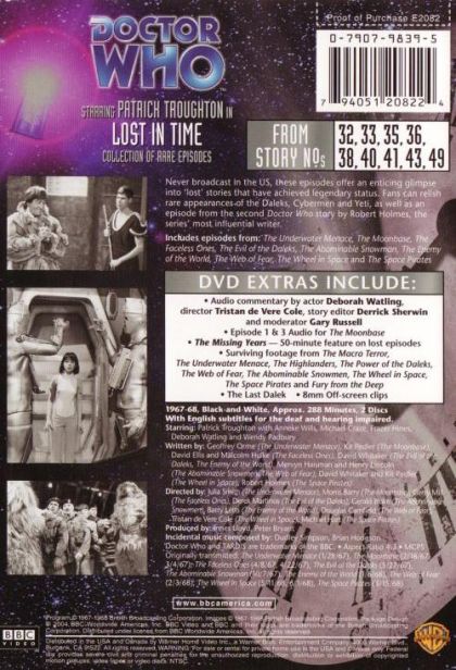 Includes episodes from: The Underwater Menace, The Moonbase, The Faceless Ones, The Evil of the Daleks, The Abominable Snowmen, The Enemy of the World, The Web of Fear, The Wheel in Space, and The Space Pirates.