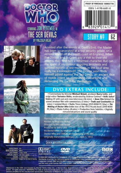 Arrested after the events at Devil's End, the Master has been incarcerated at a top security prison on a remote island off the south coast of England. When the Doctor and Jo Grant pay a visit to their old enemy, they find him a reformed character. But can the spate of mysterious shipping accidents and garbled reports of sea monsters in the local area really be a coincidence? The Doctor soon finds himself pitted against the Sea Devils, an ancient race of reptile intent on eliminating humankind and reclaiming the Earth for themselves.