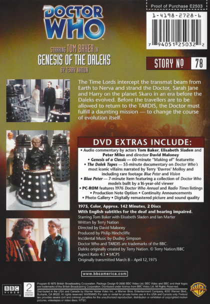The planet Skaro, the distant past. The Time Lords divert the Doctor, Sarah and Harry to this war-torn world, and give the Doctor a mission: the evil of the Daleks is about to be born here, and the Doctor is to try to ensure they evolve into less lethally aggressive beings - or, failing that, to avert their creation altogether. But has even the Doctor the right to commit genocide?