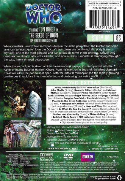 When scientists unearth two seed pods deep in the arctic permafrost, the Doctor and Sarah Jane rush to investigate. Soon the Doctor's worst fears are confirmed: the pods house Krynoids, one of the most parasitic and dangerous life forms in the universe. One of the creatures has already infected a scientist, and now a hideous monster is rampaging through the base, intent on total destruction.