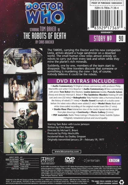 An unnamed world, an unknown time. A vast mining vessel trawls a sea of mineral sand for valuable ores, the tiny human crew served by an army of humanoid robots. But as the Doctor and Leela arrive, one of the crew is found murdered... and if they didn't do it, who did?