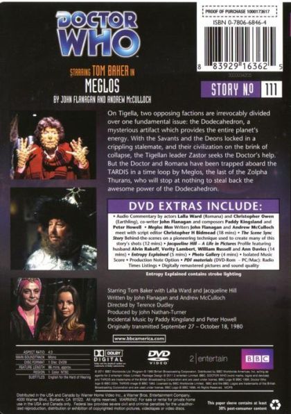 The TARDIS is intercepted by the megalomaniacal xerophyte Meglos, last survivor of the planet Zolfa-Thura, and trapped in a chronic hysteresis - a time loop - but the Doctor and Romana manage to free it.