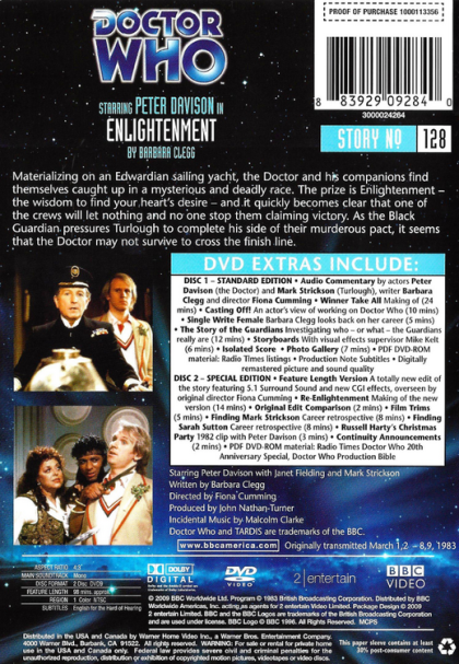 Materializing on an Edwardian sailing yacht, the Doctor and his companions find themselves caught up in a mysterious and deadly race. The prize is Enlightenment - the wisdom to find your heart's desire - and it quickly becomes clear that one of the crews will let nothing and no one stop them claiming victory. As the Black Guardian pressures Turlough to complete his side of their murderous pact, it seems that the Doctor may not survive to cross the finish line.