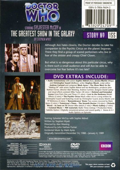 Although Ace hates clowns, the Doctor decides to take his companion to the Psychic Circus on the planet Segonax. There they find a group of scared performers who live in fear of the sinister and creepy Chief Clown.
