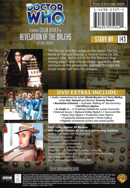 The Doctor and Peri arrive on the planet Necros where, in a facility called Tranquil Repose presided over by Mr Jobel and his assistant Tasambeker, the wealthy can have their newly-deceased bodies cryogenically frozen until such time as medical science can cure whatever killed them.