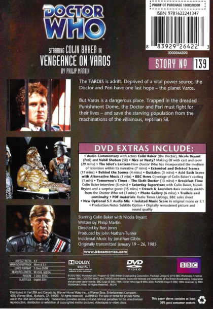 But Varos is a dangerous palce. Trapped in the dreaded Punishment Dome, the Doctor and Peri must fight for their lives - and save the starving population from the machinations of the villainous, reptilian Sil.