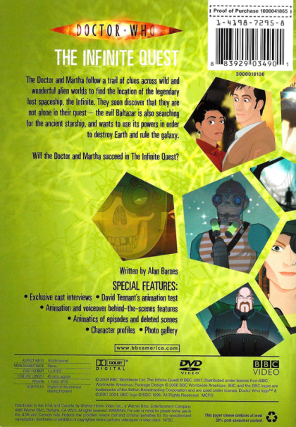 In this animated adventure The Doctor and Martha Jones trek through space and time in a race against the galaxy's greatest despot, Balthazar, to follow a complex trail of clues to discover the location of the legendary lost spaceship, the Infinite, which, according to myth, can grant anybody their heart's desire.
