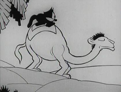 Here we have Felix the Cat in Arabia ... so, roll on the usual Arabian clichés. We get gags involving a flying carpet, a hubble-bubble and a camel.
