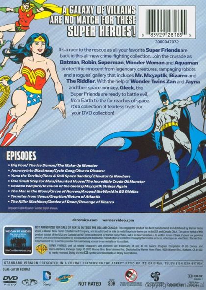 The name of the program (and the JLA members featured with the Super Friends) have been variously represented (as Super Friends and Challenge of the Super Friends, for example) at different points in its broadcast history.