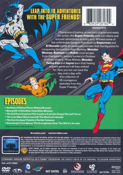 The world's most popular team of DC Comics Super Heroes continue to battle their comic book foes as well as non comic book threats in shorter length episodes. There were three short 7 minute segments in one half hour show. This time, Newer heroes Black Vulcan, Samaraui, and Apache Chief appeared more prominently in episodes alongside Superman, Wonder Woman, and Batman and Robin. These four heroes would periodically guest appear in the Wonder Twins episodes to give their Exxorian protégés a hand when the going got tough. In addition, Justice Leaguers like Aquaman, Green Lantern, Flash, Hawkman, Hawkgirl, and the Atom appeared frequently. Occasionally, villains like Bizarro and Mr. Mxyztplk would show up to menace our heroes while non comic book threats like the Incredible Crude Oil Monster, the Voodoo Vampire, the Outlaws of Orion, and Diamond Jack all provided our heroes with some great challenges.