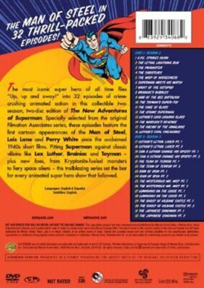 The New Adventures of Superman was an animated series that premiered on September 10, 1966. The series was produced by Filmation Associates and ran for three seasons. It was based on the popular Superman comics created by Jerry Siegel and Joe Shuster. The series focuses on the adventures of Superman an incredibly powerful superhero from the planet Krypton who defends Earth from all sorts of dangers. Superman's secret identity is Clark Kent a mild-mannered reporter for the newspaper "The Daily Planet". There Superman worked under newspaper editor Perry White with fellow reporter Louis Lane and photographer Jimmy Olsen. The first season of the series ran from 1966 to 1967 under the title The New Adventures of Superman and featured two six minute Superman cartoons with one six minute Superboy cartoon played between them. Thirty-six Superman shorts and eighteen Superboy shorts were produced for the series. This guide features only the Superman cartoons featured in the series. For a complete listing of the Superboy cartoon featured in the series, see The Adventures of Superboy (1966). In the 1967-1968 season sixteen new episodes of The New Adventures of Superman ran as part of The Superman/Aquaman Hour of Adventure. This hour long animated show featured episodes from a number of other cartoon series. In addition new Superman episodes, the show also featured eight new episode of The Adventures of Superboy (1966), thirty-six episodes of Aquaman, three episodes of The Green Lantern, three episodes of Hawkman, three episodes of The Justice League of America, three episodes of The Atom, three episodes of The Flash, and three episodes of The Teen Titans. In the 1968-1969 season was the third and final season of new episodes of The New Adventures of Superman. The artwork of the series changed to imitate that of Superman comic book artist Curt Swan. It also featured longer two-part episodes. The final sequence of sixteen shorts ran as part of The Batman/Superman Hour. This show also featured eight new episodes of The Adventures of Superboy (1966) and thirty-two animated episodes of Batman. The New Adventures of Superman was cancelled partly due to protests over violent content by Action For Children's Television. First Telecast: September 10, 1966 Last Telecast: September 6, 1969 Episodes: 68 Color Episodes (68 six minute episodes, 8 two-part episodes)