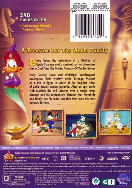 Duck Tales the Movie: Treasure of the Lost Lamp is an animated feature film based on the popular Disney children’s television series. In this movie, Scrooge McDuck (Alan Young) takes his zany band of nephews to Egypt, where they discover a magical lamp with a genie (Rip Taylor) inside. The genie grants them a variety of wishes which brings them a great deal of wealth. They are not the only ones though, who desire the lamp and what it is capable of, as a band of thieves are out to get it and Scrooge. Now the family must come together and embrace each other’s strengths if they are to protect their lamp.